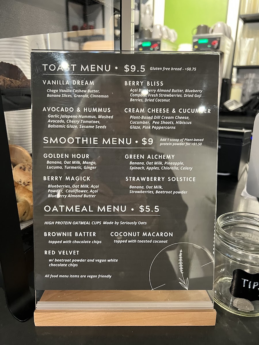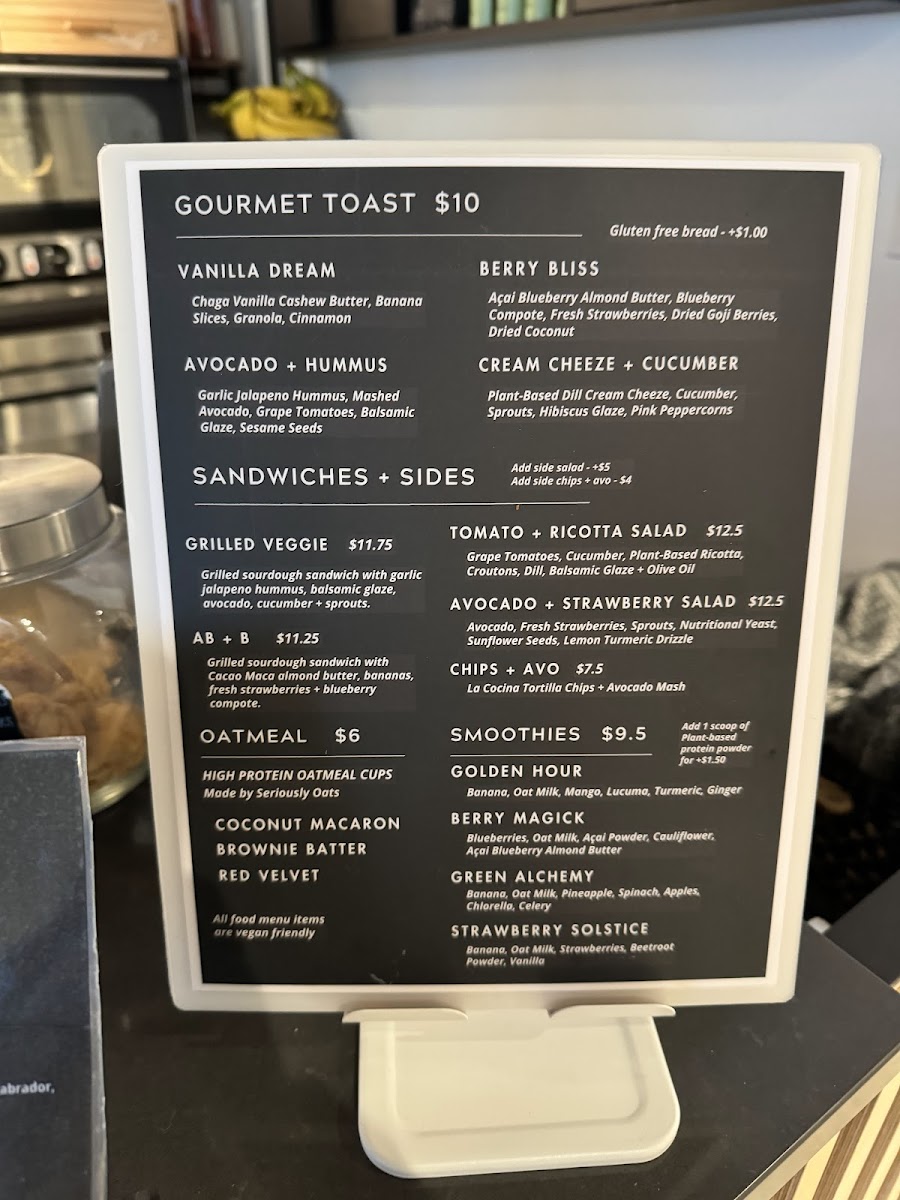For those craving something savory, the Gourmet Toast menu is sure to please. The Vanilla Dream offers a unique twist, while the Avocado + Hummus and Berry Bliss combinations provide a deliciously balanced mix of creaminess and freshness. There's also a refreshing Cream Cheese + Cucumber toast for a light, yet satisfying bite.